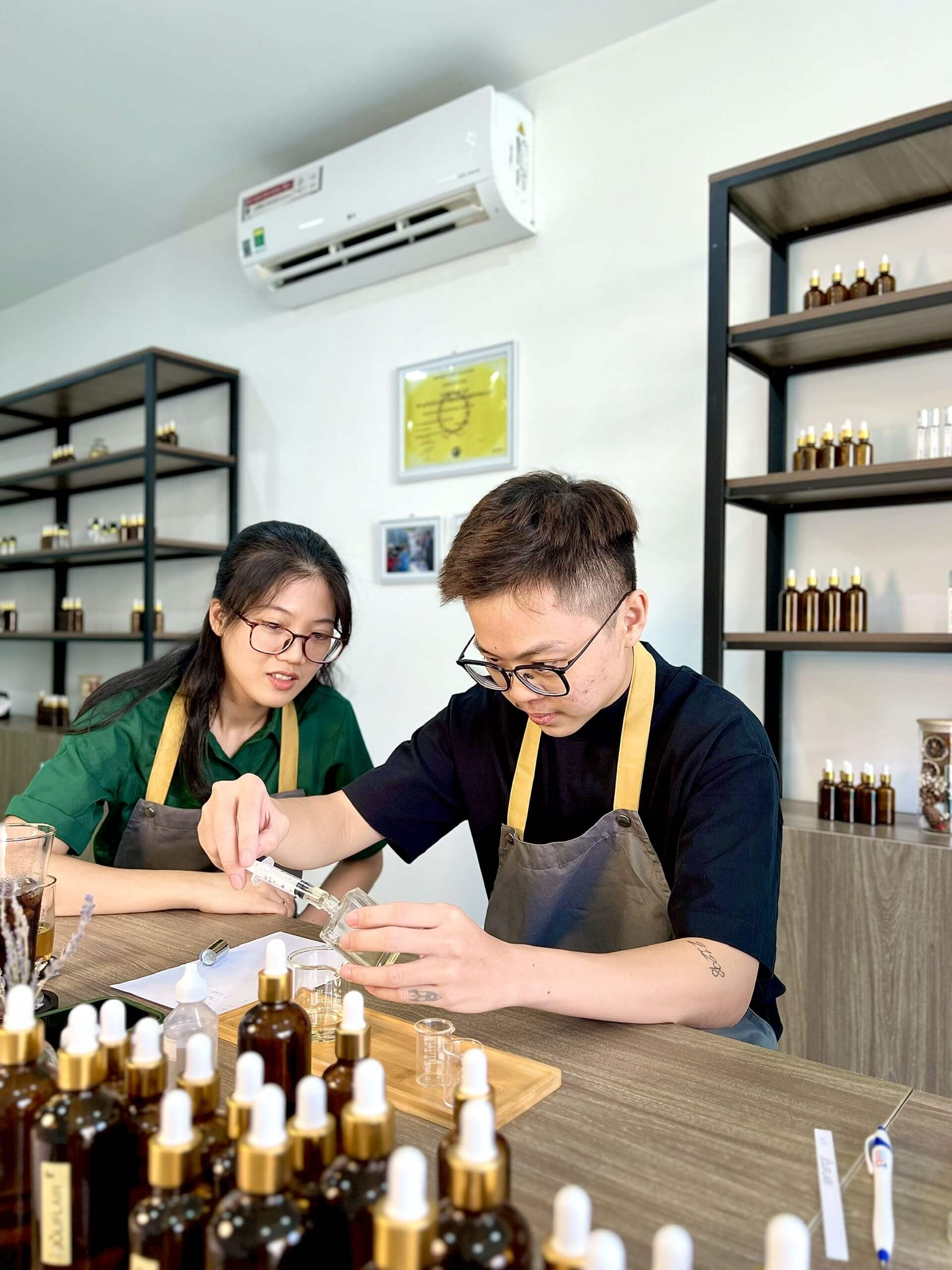 – Cách điều chế nước hoa cùng với các chuyên gia mùi hương được đào tạo từ Pháp